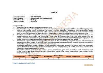 Silabus dan rpp kewirausahaan smk kelas x xi xiirar 44 3 20 2 1 menganalisis peluang usaha. Untuk ki kd yang kami sampaikan ini untuk disampaikan dan dipelajari oleh siswa selama 2 tahun, yaitu dari kelas xi/11 dan kelas xii/12. Materi produk kreatif dan kewirausahaan smk kelas xi semester 2kami menyajikan perangkat pembelajaran untuk rpp dan silabus smk produk kreatif dan kewirausahaan kelas 12 k13 revisi 2017 yang telah disusun secara lengkap dan sistematis berdasarkan serangkaian kd yang dilaksanakan dalam satu kali pertemuan atau lebih rpp dan silabus smk produk. Silabus produk kreatif dan kewirausahaan kelas xii. Materi produk kreatif dan kewirausahaan kelas xi tkj k13 revisi 2017 smk islam 1 blitar thn 2018 / 2019 by abd umar semua materi.