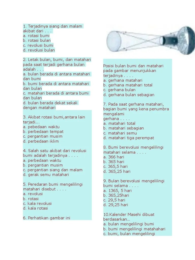 Siswa dapat menyebutkan pengaruh rotasi dan revolusi bumi.