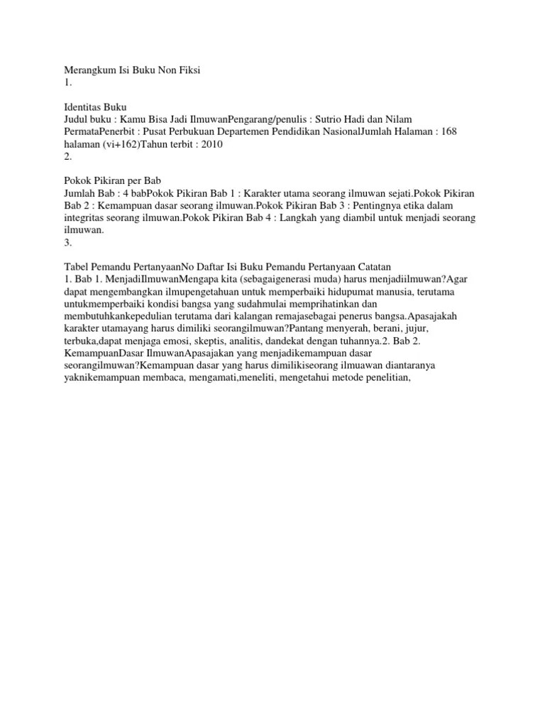 rangkuman resensi buku non fiksi green computing docxngkuman resensi buku non fiksi green computing docx. Dikutip dari buku 'ringkasan materi dan latihan soal bahasa indonesia kelas 6 sd' Membaca novel tidak hanya memberikan kita cerita, namun juga memberikan. Untuk lebih jelasnya simak penjelasan. Sebutkan contoh karangan nonfiksi yang pernah kamu baca brainly.